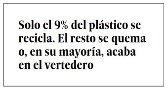 En los años ochenta se empezó a reciclar el plástico. Pero no parece haber funcionado. Solo el 9% de los residuos plásticos se reciclan. Además, los plásticos reciclados, que no tienen la calidad de los originales, rara vez se reciclan una tercera o cuarta vez. Así que el reciclaje solo retrasa su llegada al vertedero. Otro 12% de la basura plástica se elimina mediante incineración. Aunque la cifra de plásticos descompuestos por pirólisis (más eficiente y ecológica) va en aumento, la gran mayoría de estos plásticos se queman sin más. Por áreas geográficas, europeos (30%) y chinos (25%) son los que más reciclan y también los que más queman, un 40% y un 30% respectivamente. En el otro extremo están los Estados Unidos. Con una cifra de incineración del 16%, solo recicla el 9% del plástico que usa. El otro 75% se tira y ya está.