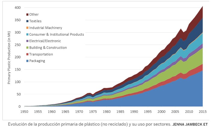 «La mayoría de los plásticos no se biodegradan, por lo que los residuos plásticos que estamos generando los humanos nos acompañarán durante siglos e incluso milenios», dice la investigadora de la Universidad de Georgia, Jenna Jambeck. En 2015, Jambeck y un grupo de colegas estimaba que cada año llegaban a los mares del planeta unas ocho toneladas de plásticos. Ahora, junto a colegas de la Universidad de California en Santa Barbara y la Asociación para la Educación Marina (SEA), Jambeck ha ido más allá, calculando cuánto plástico han generado los humanos en su corta historia y dónde ha ido a parar.